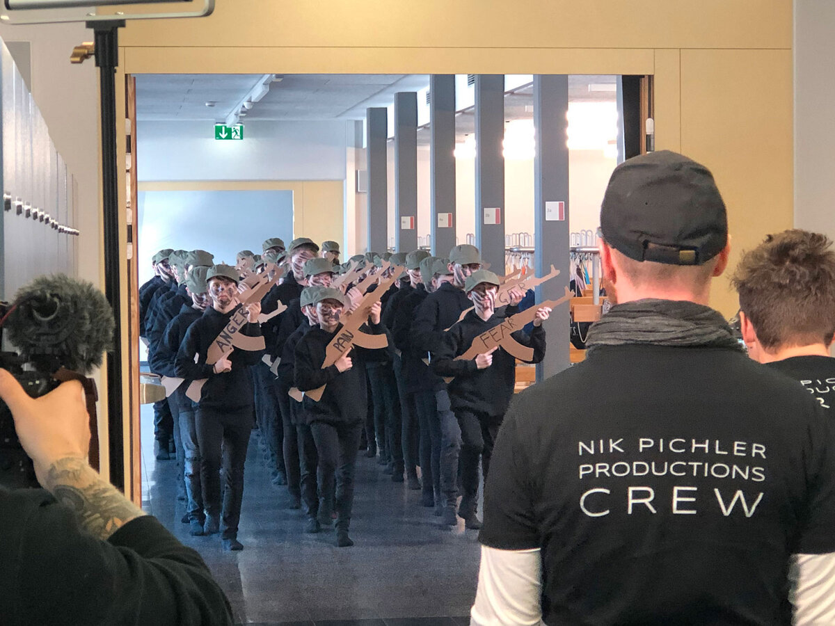 Aus dem Unterricht wurde eine spannende und intensive Projektarbeit, welche von Recherchieren, Crowdfunding, Interviews führen und geben bis hin zur finalen Präsentation vor Publikum reichte. Die Vorbereitung und Umsetzung des Videoclips war die größte Herausforderung. Falco führte neben der Arbeit mit den Schülern stundenlange Gespräche mit verschiedenen Organisationen um sein eigenes Bild zur zu verschaffen. Die Zahlen und Fakten waren einfach erschreckend! Er interviewte einige Opfer sowie Täter, pädophile Frauen wie Männer, Anwälte, Psychologen und Polizisten. Er tauchte immer tiefer in die dunkle Materie bis hin zum Kinderhandel und Kinderpornografie ein um das Drehbuch zu schreiben. Schauspieler Harald Krassnitzer (Tatort, spielt im Clip die Rolle des Vaters) verlieh dem Ganzen durch seine unglaubliche Erfahrung den Feinschliff und stand Falco zur Seite als Co Regisseur. Durch die vielen Gespräche wurde allen immer bewusster, wie nah, komplex und vor allem verbreitet physische, psychische und sexuelle Gewalt ist. Von der Straße bis hinauf zur höchsten, politischen Chefetage. Es reichte vom eigenen zuhause bis hinaus über den gesamten Globus. Es flossen so einige Tränen und das heftige Thema ging ein jedem sehr unter die Haut und Falco fing an, die Schüler von der zu dunklen Materie abzuschirmen. Es ging ja nicht um irgendeine Geschichte, das war unsere Welt, unsere Gesellschaft, unser persönliches Umfeld, die Realität. Der Dreh war sehr emotional für alle Beteiligten.